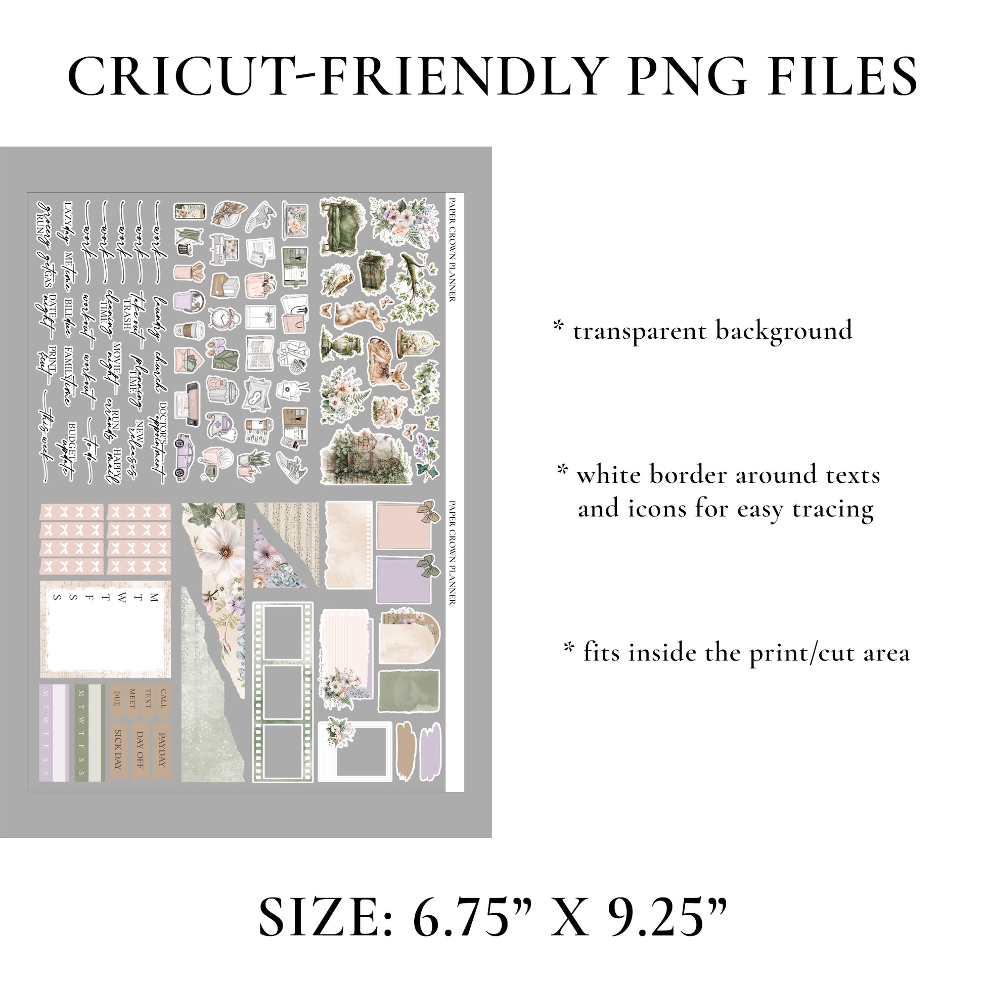 - Cricut-friendly PNG files are included, they come with transparent background, white border around the icons. Additionally you will receive blackout PNG files for easy tracing